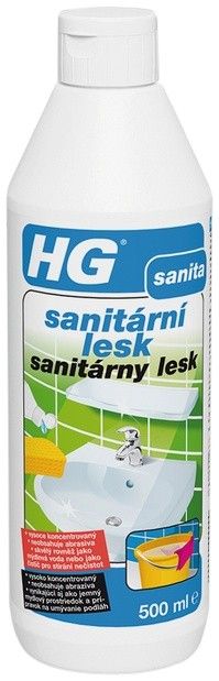 HG sanitárny lesk dovolí umývadlám, vaniam, toaletám, vodovodným batériam a dlažbe lesknúť sa ako keby boli nové. HG sanitárny lesk príjemne vonia a odstraňuje mastné hrany na vaniach, zvyšky mydiel, kožného tuku a ľahký nános vodného kameňa. Vďaka vysokej koncentrácii je už pár kvapiek prípravku nanesených na sanitárnu špongiu postačujúce. HG sanitárny lesk neobsahuje žiadné brúsne častice ani agresívne zložky a je taktiež bezpečný na glazúru, chróm, email, plastové hmoty či farbené povrchy. Prípravok nerobí šmuhy a pri pravidelnom používání predchádza usadzovaniu vodného kameňa. Naneste niekoľko kvapiek prípravku HG sanitárny lesk na vlhkú špongiu a povrch dobre vyčistite. Potom ho opláchnite čistou voudou alebo utrite čistou vlhkou handrou. Pri čistení kúpacích vaní nastriekajte slabú vrstvu prípravku priamo na steny vane a potom ich vyčistite vlhkou špongiou.
